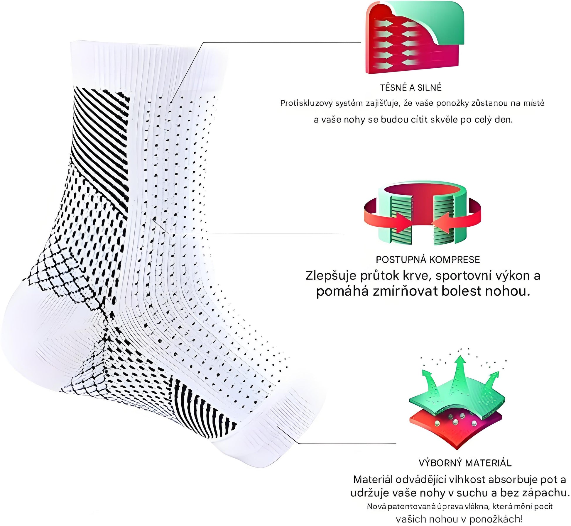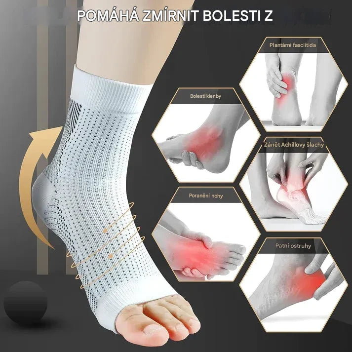 ozlučte se s bolestí nohou Tyto ponožky jdou nad rámec běžného – rychle ulevují od bolesti a diskomfortu spojeného s různými potížemi nohou. Jejich inovativní design napodobuje zdravý oběhový systém, podporuje rychlou regeneraci nervů a snižuje otoky, čímž přináší bezkonkurenční úlevu.