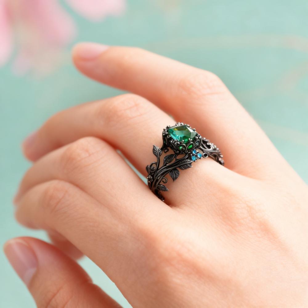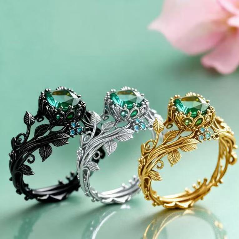 Prsten s přírodním zeleným krystalem – vintage design, dokonalý dárek k Vánocům.✨✨